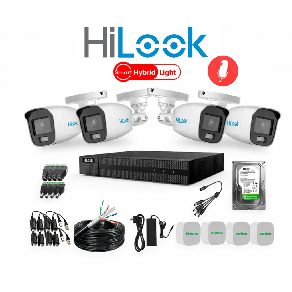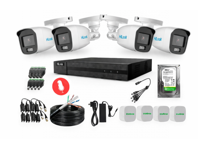 4 - CAMARAS HILOOK 2MP BULLET EXTERIOR - PLASTICO - C/AUDIO - THC-B127-LPS