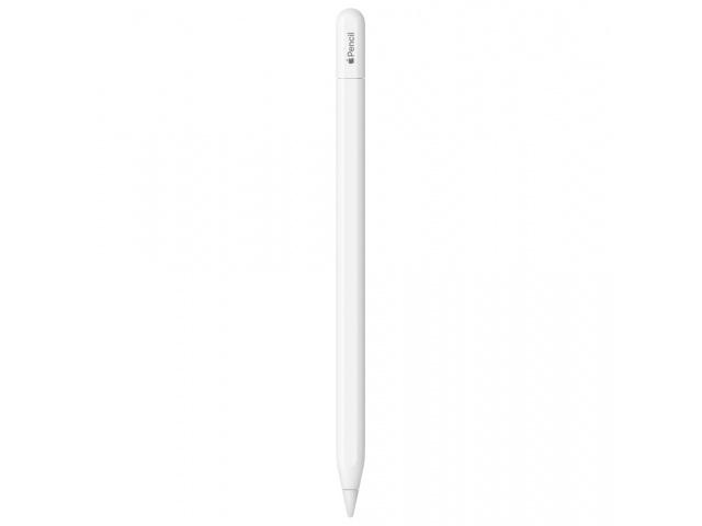 El Apple Pencil (USB-C) se empareja y carga mediante un cable de carga USB-C. Se fija magnéticamente al lateral del iPad para guardarlo.