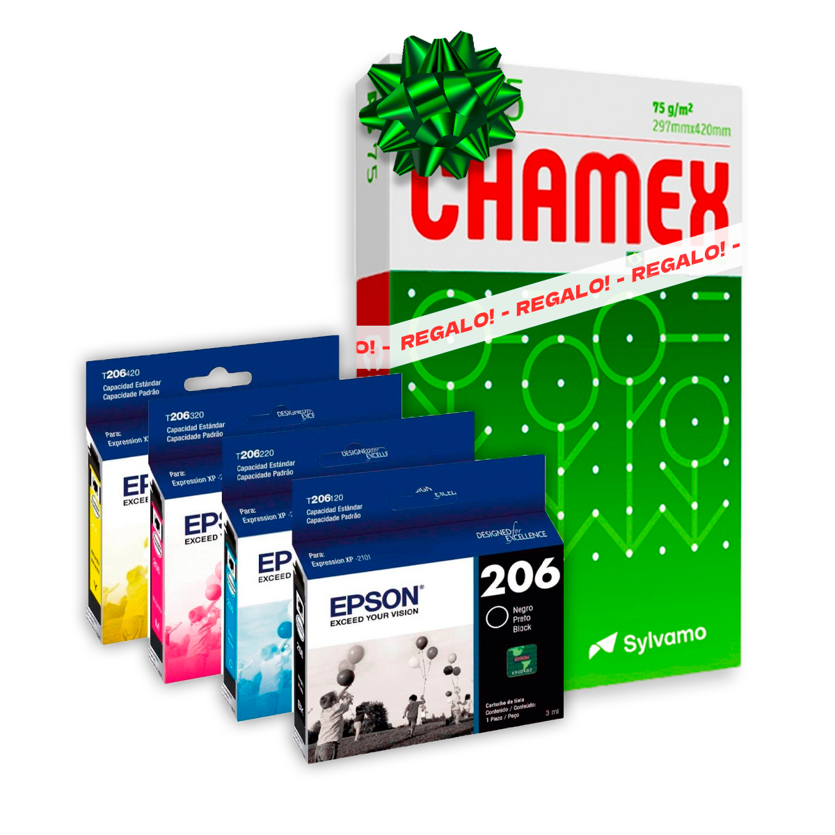 Pack de cartuchos Originales Epson 206 para impresora XP2101 + Resma de 500 hojas Chamex de REGALO!