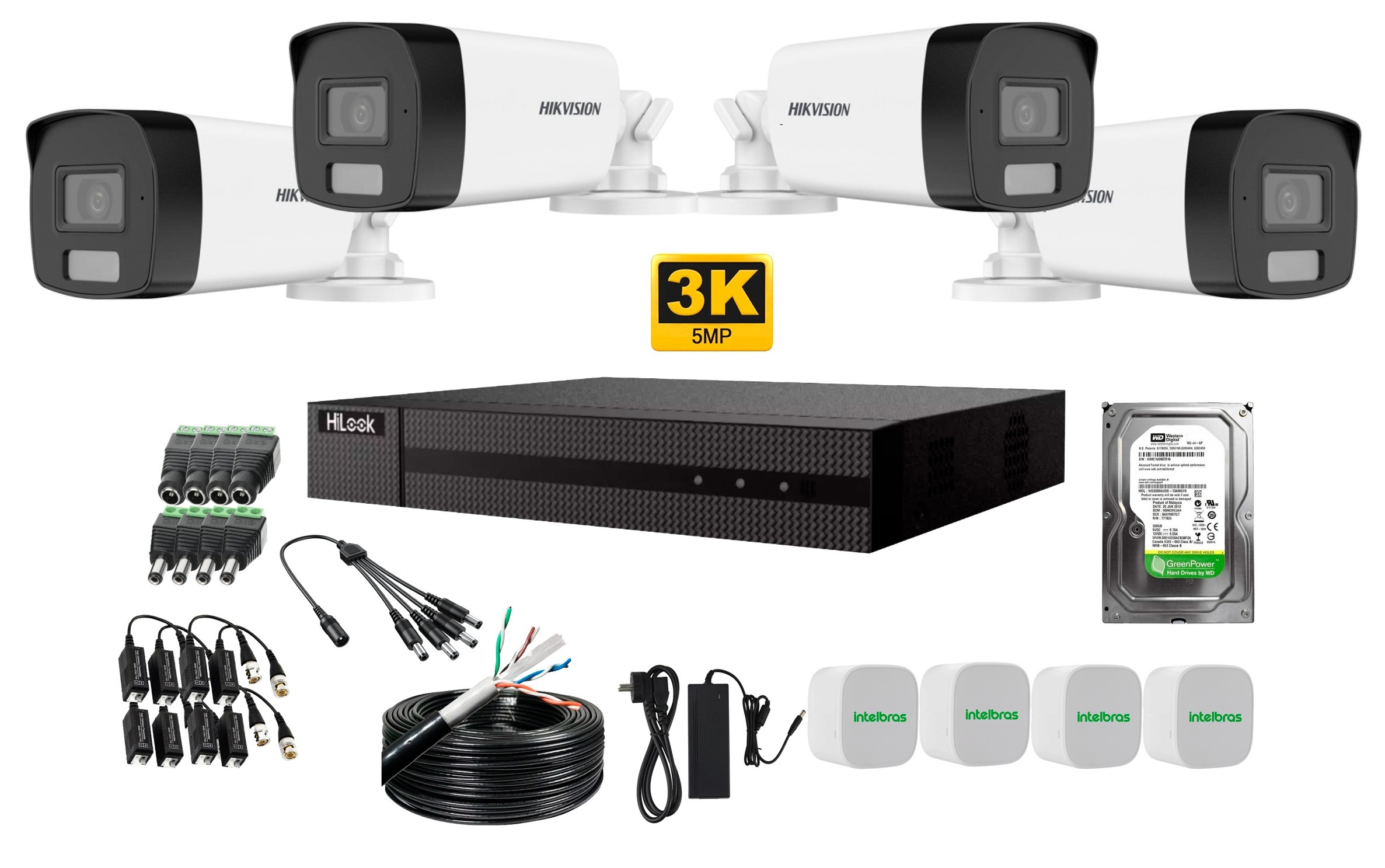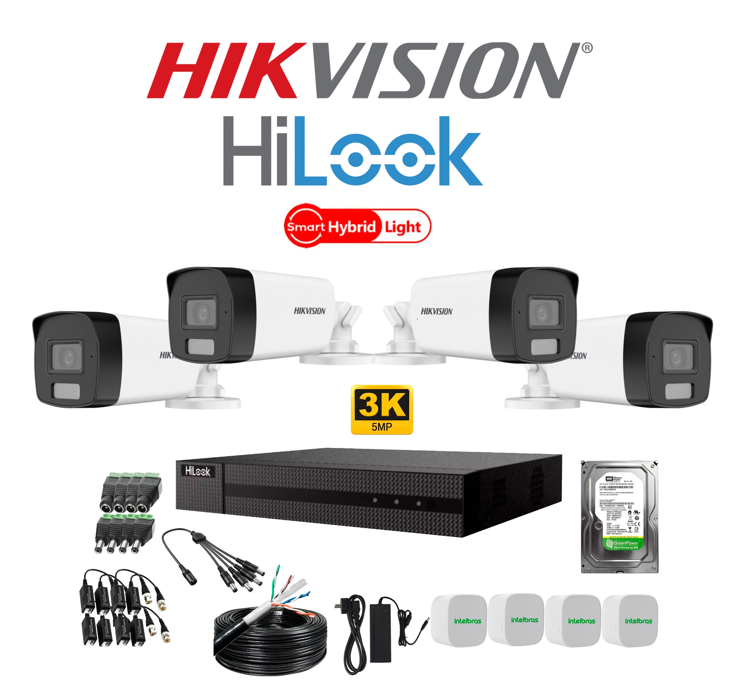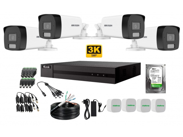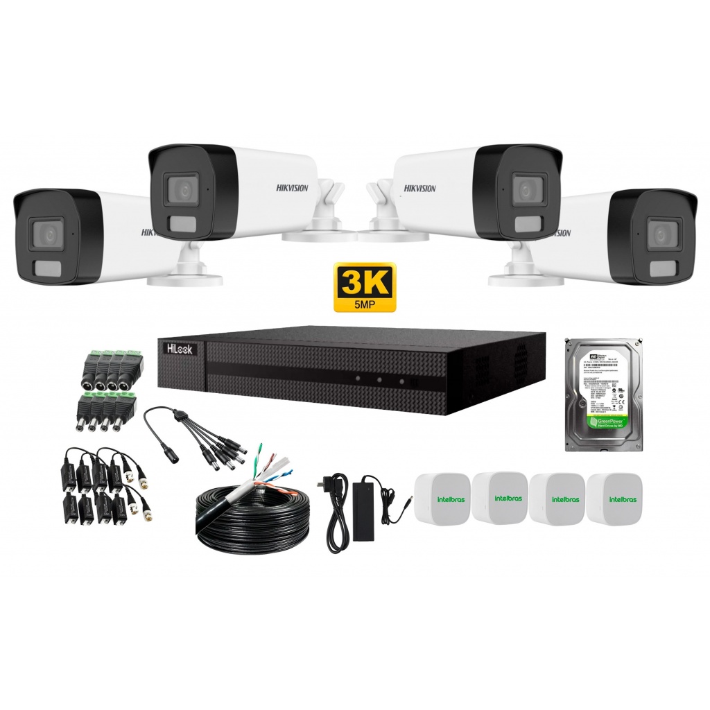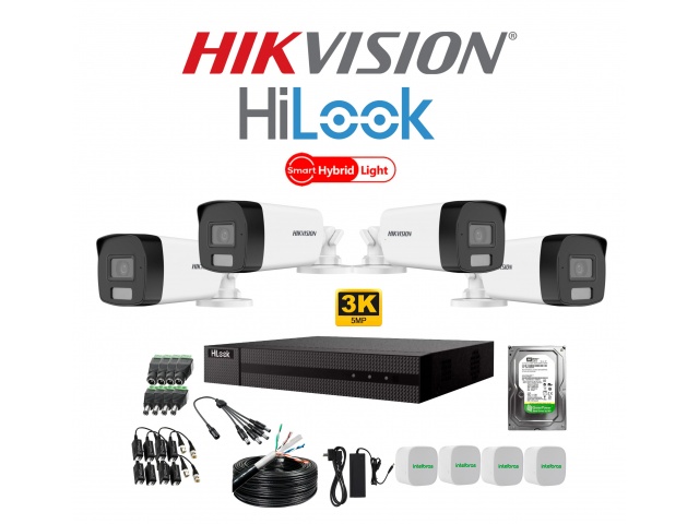KIT DE 4 CÁMARAS HIKVISION SMART HYBRID LIGHT 5MP Y DVR HILOOK